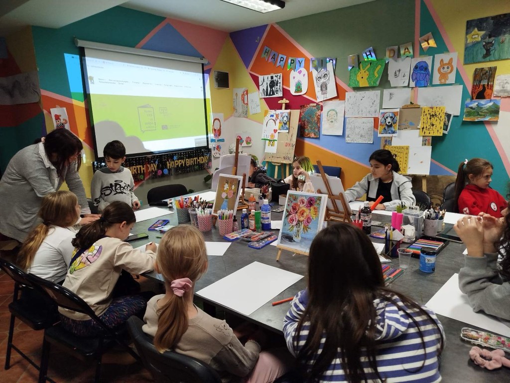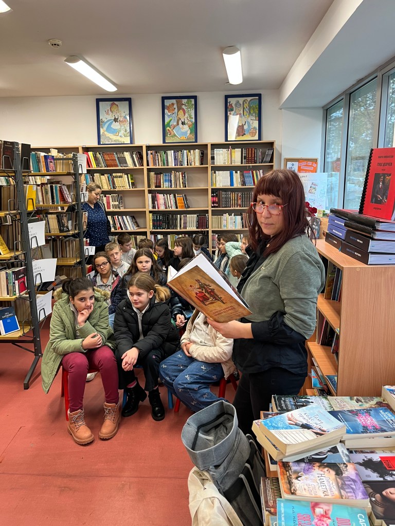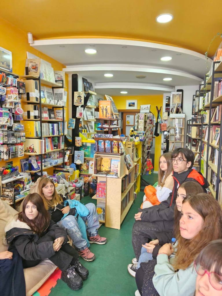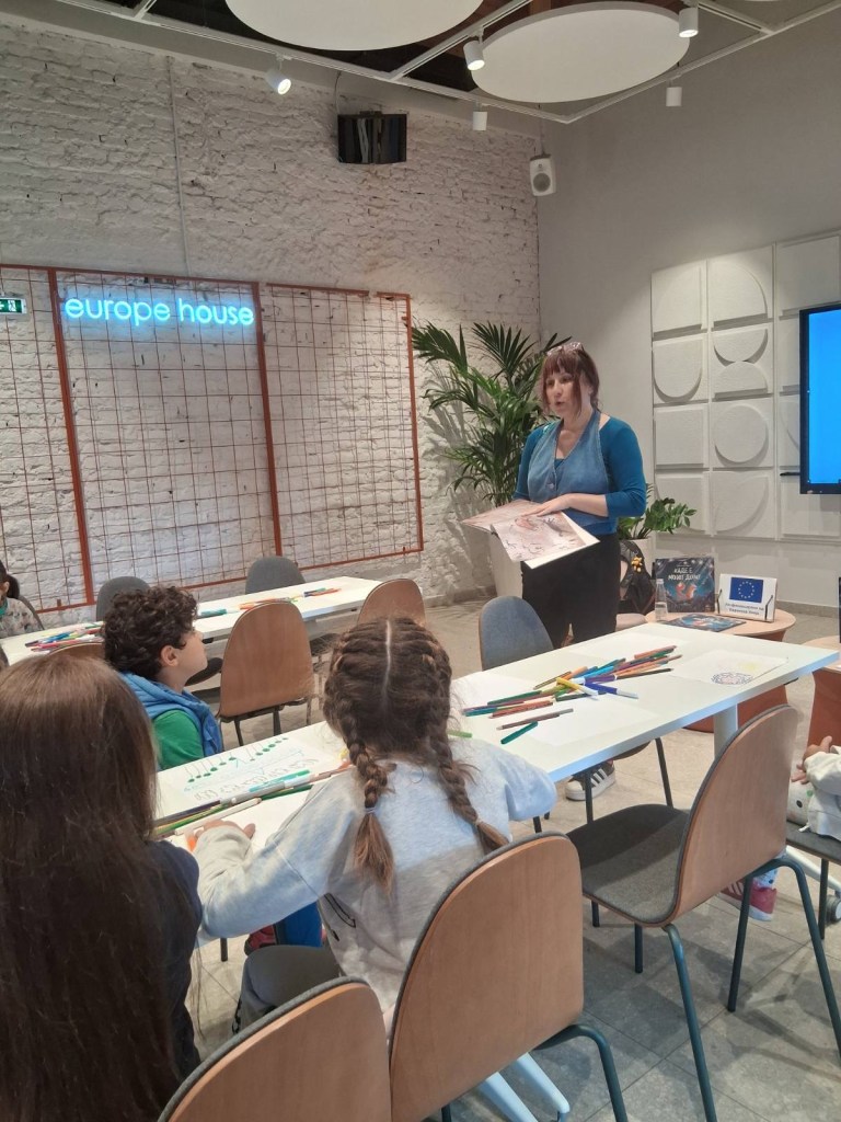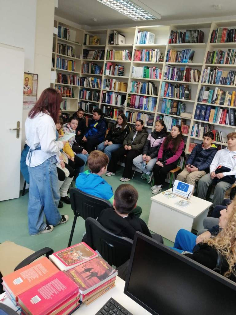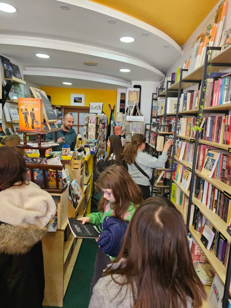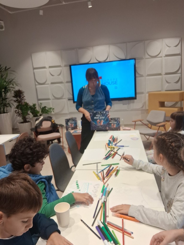 Работилница во книжарница Чудна шума, ден на Европските автори – запознавање со книгите од проектот „Млади европски приказни“, деца од литературна секција од О.О.У. „Александар Македонски“ Скопје – со Билјана С. Црвенковска, 25.03.2024